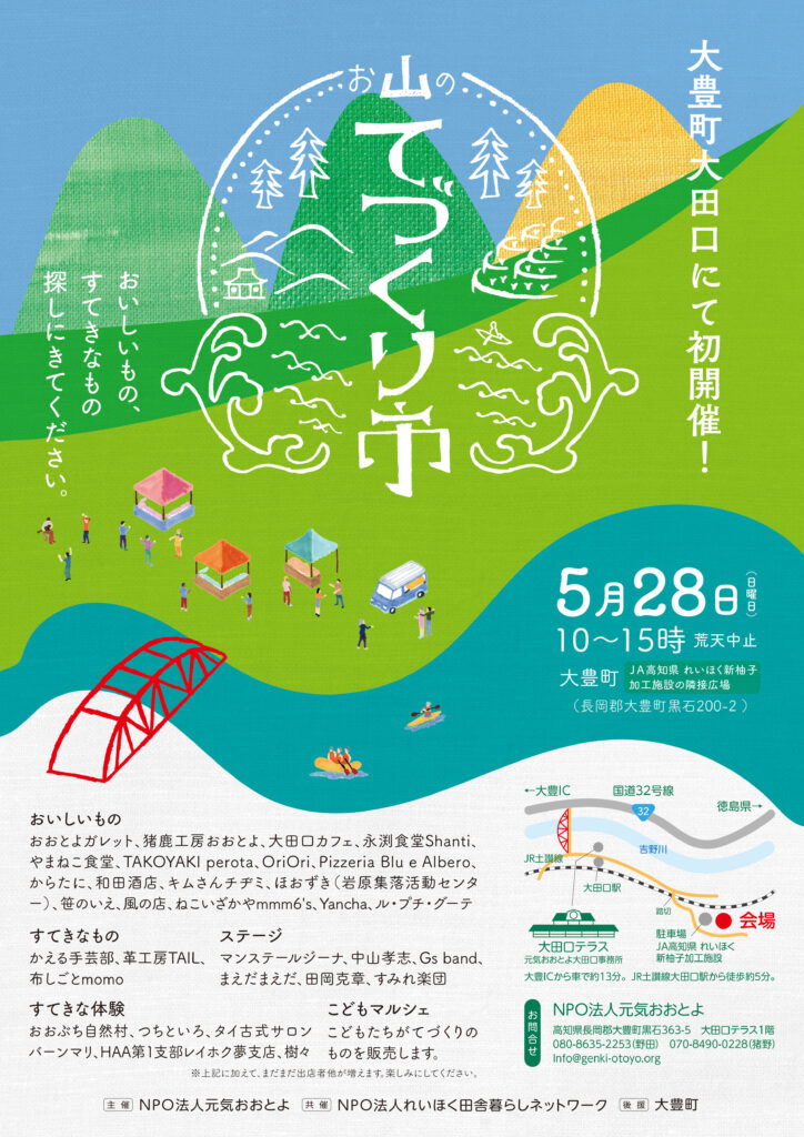お山のてづくり市 高知県大豊町で行われたお山のてづくり市ポスターとチラシデザインを担当しました。 Posted in flyer, poster | Tags: , flyer, graphic design, poster カフェZOEロゴデザイン »