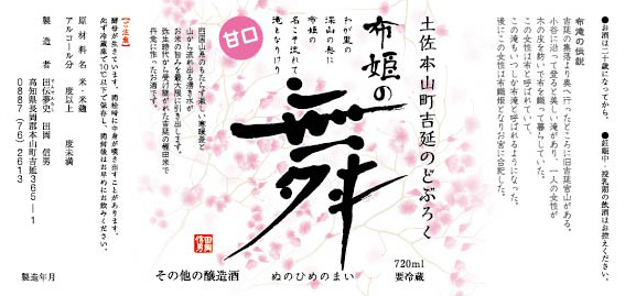 本山町の農家「田岡信男」さんからの依頼で製作しました。地元に伝わる布姫伝説をもとにネーミングを決定されていました。製作前に味見をさせていただきました。作り立てだったので米の香りが印象的でした。文字は筆で書いています。バックのピンクは「岸つつじ」です。こちらも地元の川岸などでよくみられるピンク色のかわいいつつじです。